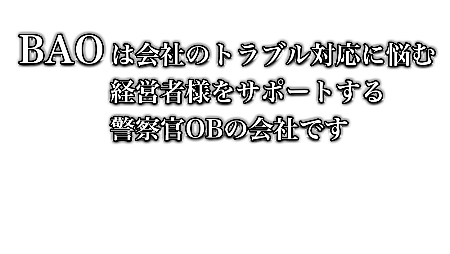 企業の経営者として、これらに瞬時にそして的確に対応することが望まれますが、このようなことに慣れた経営者はそう多くはいないでしょう。BAOには、警備・ 刑事・防犯等各分野に精通した警察官OBが多数おります。これらの事案対 応を経験豊富な警察官 OB がお手伝いいたします。